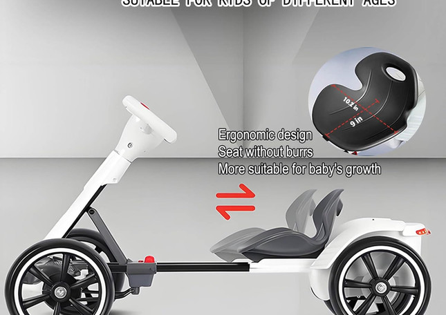 - Le kart électrique est doté d'un bouton de démarrage à une touche avec des lumières LED attrayantes, des haut-parleurs et de la musique pour améliorer le plaisir de conduite des enfants. En tenant compte des différentes tailles et formes de chaque enfant, nos sièges peuvent être ajustés pour que chaque enfant puisse trouver la position de conduite la plus confortable.